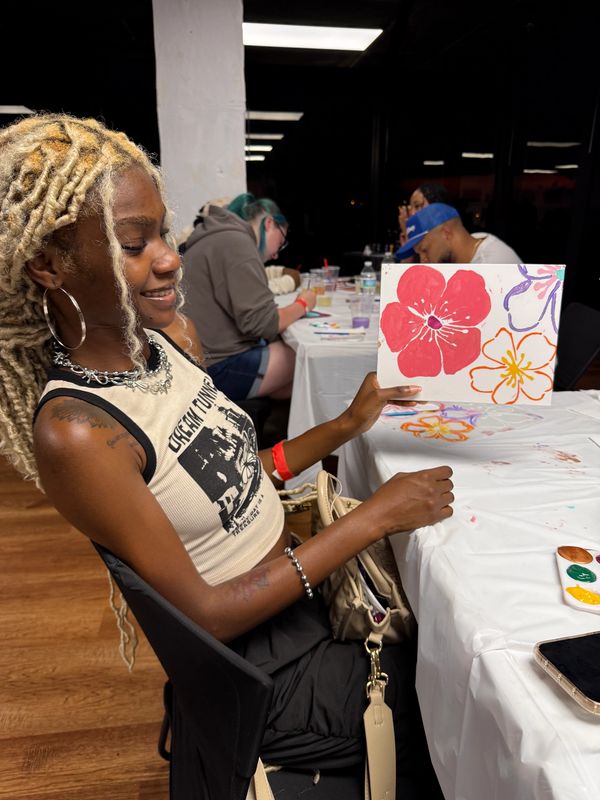 This ticket grants entry for (1) guest and comes with (1) glass of wine, (1) paint brush, paint, (1) canvas, and access to all live performances (seating is first come, first serve).